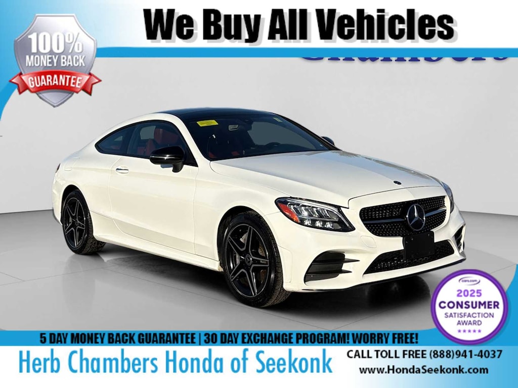 LEATHER SEATING PACKAGE 3-Position Memory for Passenger Seat, AMG® LINE Mercedes-Benz lettered brake calipers, Aluminum Pedals, AMG® Body Styling, Sport Suspension, Diamond Grille in Chrome, AMG® Line Interior, Flat-Bottom Steering Wheel, Front Brakes w/Perforated Discs, AMG® Floor Mats, Black Fabric Headliner, AMG® LineExterior, PREMIUM PACKAGE Electronic Trunk Closer, HANDS-FREE ACCESS, Blind Spot Assist, Rear Cross Traffic Alert, Power Folding Mirrors, HANDS-FREE Comfort Package, Burmester® Surround Sound System, SiriusXM Satellite Radio, 6-month all access plan trial, Keyless GO®, HEATED FRONT SEATS, HEATED STEERING WHEEL Heating for Multifunction Steering Wheel. Mercedes-Benz C 300 with Polar White exterior and Cranberry Red/Black interior features a 4 Cylinder Engine with 255 HP at 5800 RPM*.